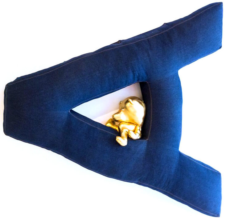 Campagne voor auping. Wij vroegen Penique uit Barcelona, bekend om hun prachtige opblaasbare installaties, om deze Koninklijke kamer te maken in de studio van fotograaf Jaap Vliegenthart die genomineerd werd voor een prijs voor deze foto. Als je goed kijkt zul je een aantal designstukken herkennen die zich achter het gouden landbouwplastic verbergen.