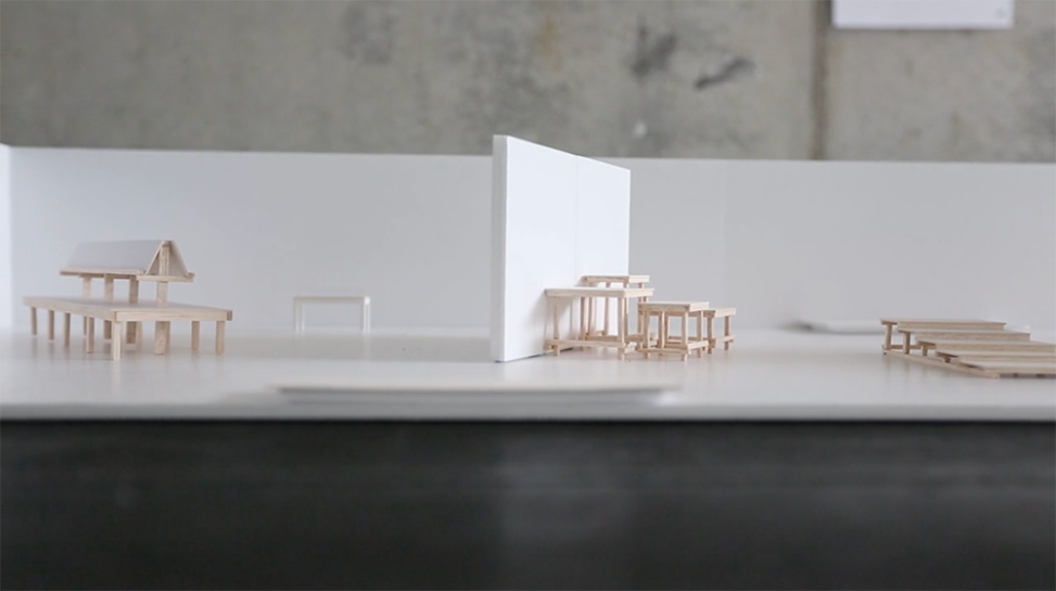 Maquette gemaakt van balsahout, foamboard en papier voor de tentoonstelling How We Work in het voormalige Stedelijk Museum ‘s-Hertogenbosch, thans het Design Museum genaamd. Gefilmd met een telefoon op het zadel van mijn fiets.